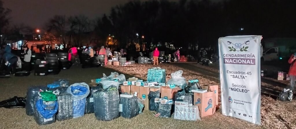 Al momento de la inspección, los funcionarios detectaron distintos elementos en el interior del rodado. Se trata de 326 neumáticos (distintas marcas y modelos) 12.600 atados de cigarrillos, mercadería del rubro tienda, bazar y electrónica que no contaban con el aval aduanero correspondiente. Además de 215 kilos de hojas de coca.
