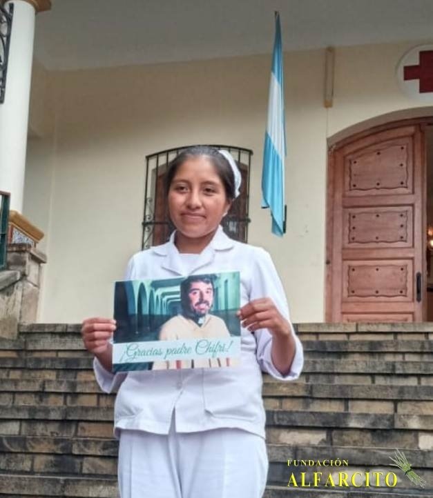 Nuestro reconocimiento para la nueva generación de enfermeros, Matías Exequiel Zalazar Yapura, Zulema Aramayo, oriunda del paraje “El Aguada”, quien se recibió de enfermera en la Cruz Roja y que fue una de las beneficiarias de las becas “Padre Chifri” de la Fundación Alfarcito.