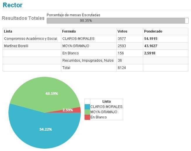 Los resultados dieron por ganador la lista encabezada por Victor Claros, convirtíendose nuevamente en el nuevo Rector de esa alta casa de estudios. Recordemos que Claros, con anterioridad ya estuvo al frente del Rectorado.