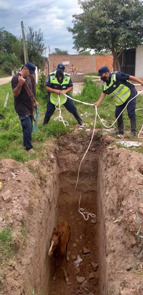 Luego de una ardua tarea efectivos de la División Caballería de Joaquín V. González rescataron un potrillo que había caído a un pozo en barrio Facundo Quiroga. Se encuentra en buen estado de salud.