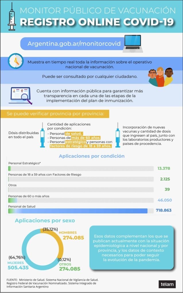 El Gobierno Nacional presentó el Monitor Público de Vacunación, un registro al que se podrá acceder online con información en tiempo real sobre el operativo nacional de inmunización contra el coronavirus, mientras se espera para el jueves la llegada desde China de un millón de dosis de la vacuna Sinopharm.