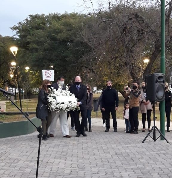 Posteriormente, se entonaron las estrofas de los Himnos Nacionales de Argentina y Siria; la secretaria de Deportes y Juventud, Josefina Chávez Díaz; el subsecretario de Asuntos Políticos e Institucionales, Néstor Ruíz de los Llanos y el presidente de la Unión, Esteban Dagum, depositaron una ofrenda floral en el lugar. Luego, el párroco de la Iglesia Ortodoxa San Jorge, Adolfo Barrionuevo, recordó a las víctimas de COVID-19 y bendijo a los presentes.