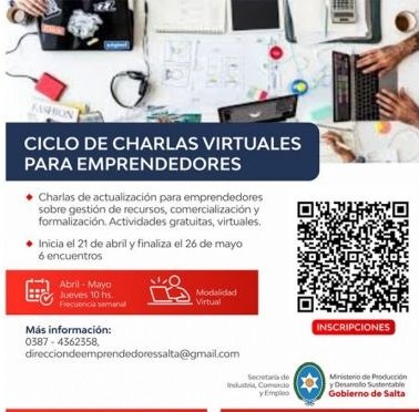 Para mayor información podrán enviar un correo electrónico a: direcciondeemprendedoressalta@gmail.com o comunicarse con el teléfono 0387-4362358, de 8 a 14.