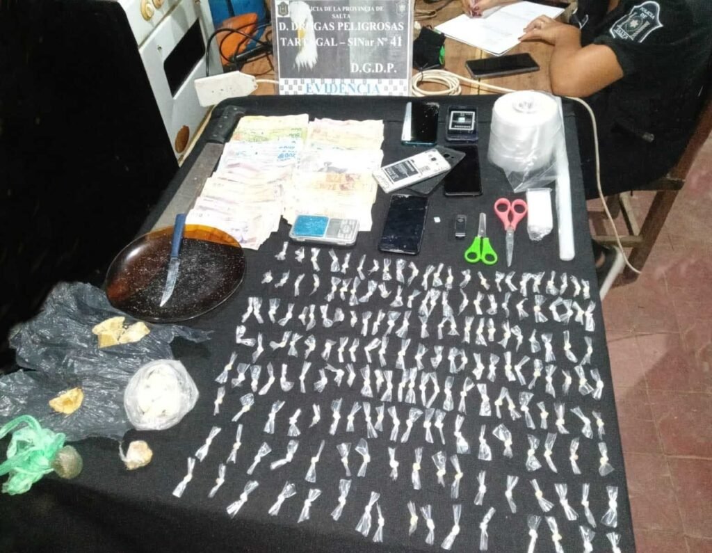Detuvieron a siete hombres y cinco mujeres y secuestraron importante suma de dinero, envoltorios con pasta base y marihuana equivalentes a 1992 dosis, un plantín de cannabis sativa y celulares.