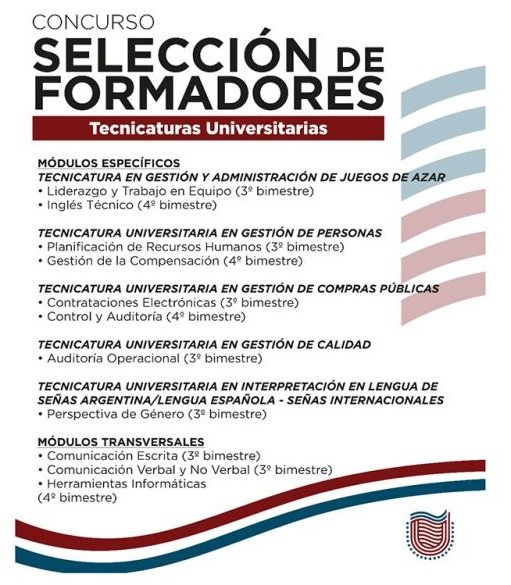 La Universidad Provincial de Administración Tecnología y Oficios (UPATeCo) informó que se encuentra abierto el concurso para la selección de los formadores para cubrir módulos de las tecnicaturas universitarias que se dictan desde la institución. Cabe destacar que las actividades académicas comenzarán el 16 de agosto.