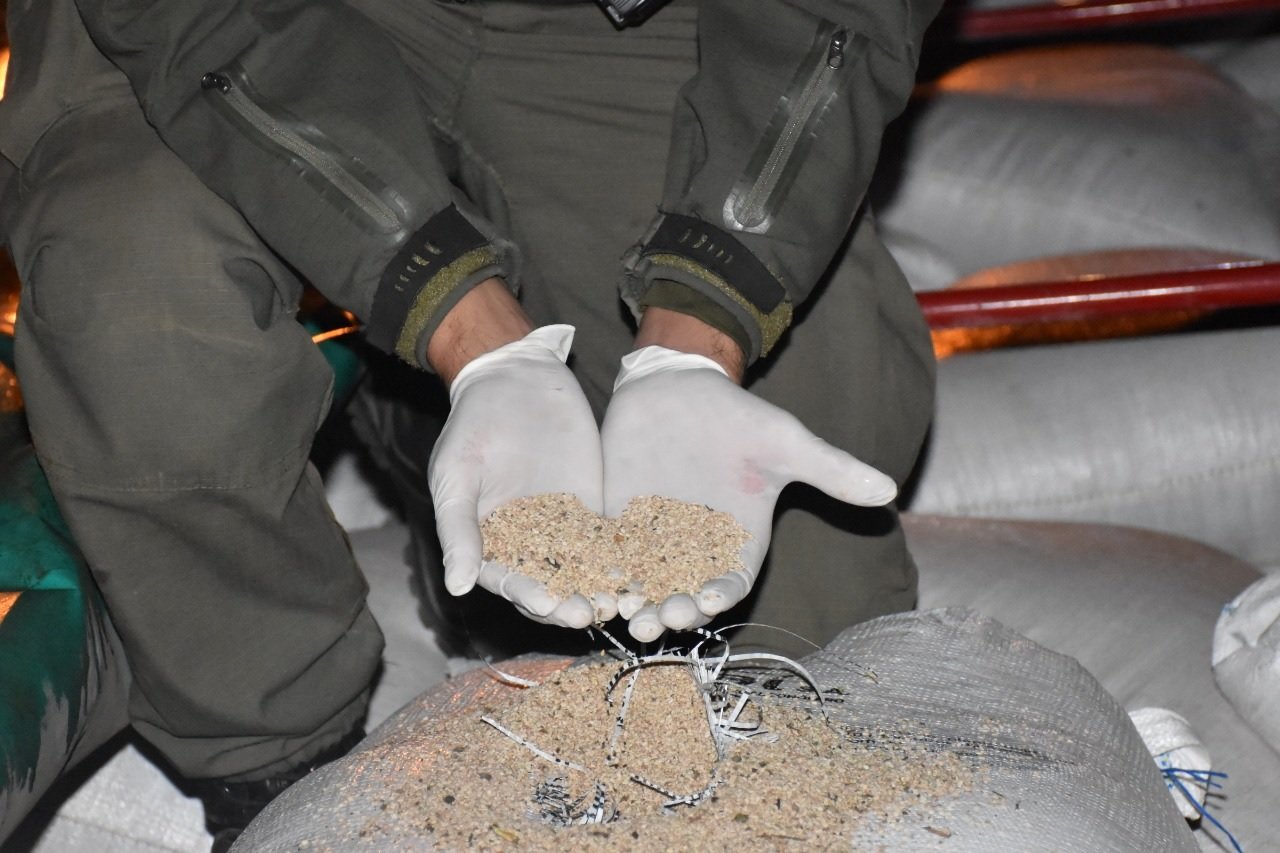 Personal de la Fuerza llevó a cabo la inspección correspondiente y detectó en su interior 700 bolsas con 50 kilos de sésamo natural cada una, totalizando 35.000 kilos.
