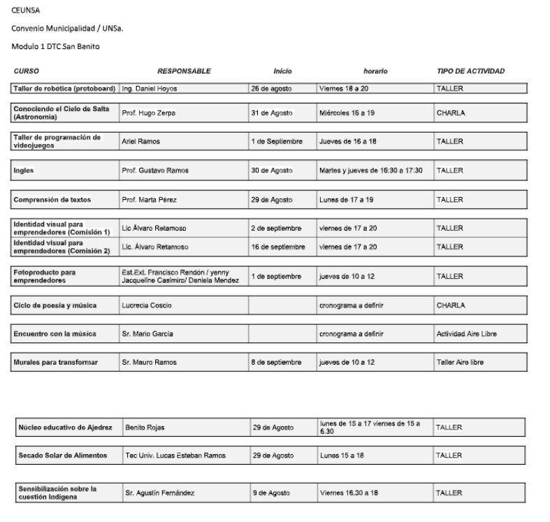 Ayer dieron inicio las inscripciones para los talleres gratuitos del “Centro de Extensión Universitaria de la Universidad Nacional de Salta” (CEUNSa), ubicado en el edificio municipal del Dispositivo Territorial Comunitario (DTC) de barrio San Benito.