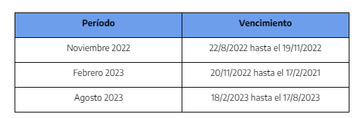 El vencimiento de la presentación de la declaración jurada formulario 1130 y del pago del impuesto especial, operará en función del período de acreditación: