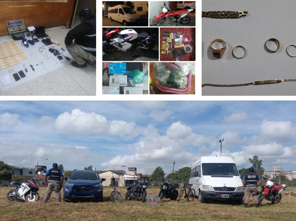 Cabe recordar que tras los allanamientos a domicilios vinculados a los investigados, se logró su detención e imputación y el secuestro de numerosos elementos de interés para la causa, entre los que se cuenta joyas reconocidas por la víctima, dinero en efectivo, vehículos, motocicletas y bicicletas, entre otros.