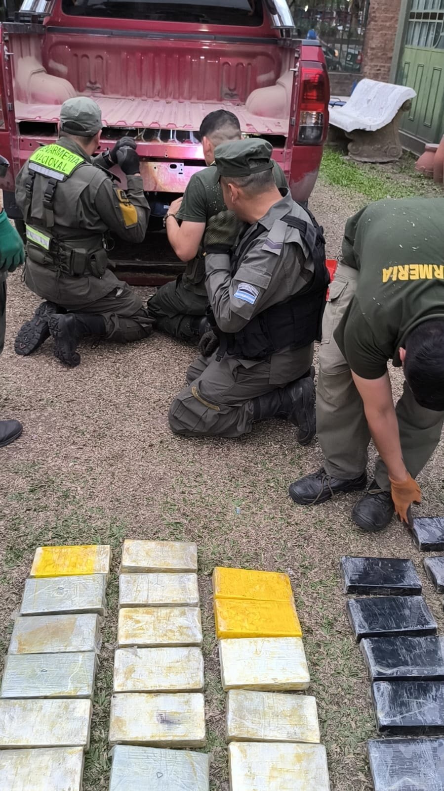 Durante el procedimiento, también se controló una camioneta Volkswagen Amarok que se pudo constatar que los dos ocupantes estaban vinculados al conductor del rodado que trasladaba el cargamento del estupefaciente.
