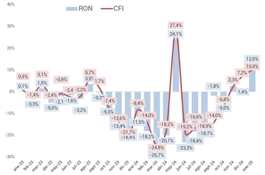 - En cuanto a las transferencias por coparticipación (CFI), todas las provincias exhibieron aumentos reales en el mes de enero de entre 6,5% y 16,1%. El promedio de todo el conjunto se situó en +10,0%.