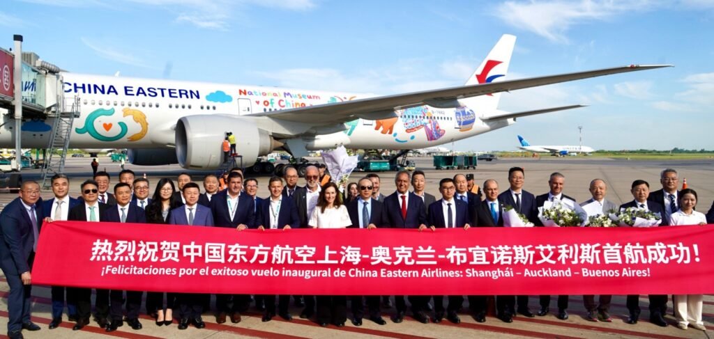 China Eastern Airlines es una de las tres principales aerolíneas estatales de China y un importante transporte aéreo a nivel mundial. La ruta inaugurada, que incluye una escala técnica de dos horas en Auckland, Nueva Zelanda, es operada por aviones Boeing 777, equipados con 6 suites de first class, 52 asientos en business y 258 en economy. El viaje tendrá una duración de aproximadamente 25 horas.