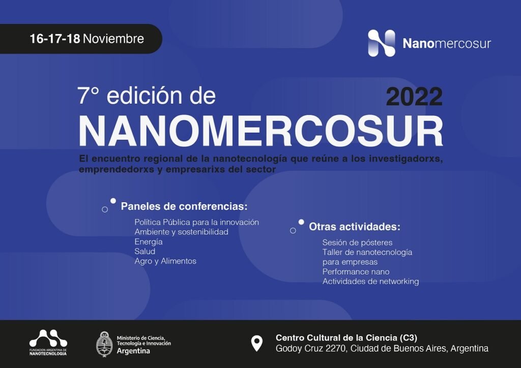 Nanomercosur es el evento de nanotecnología organizado por la Fundación Argentina de Nanotecnología (FAN) con el objetivo de propiciar el encuentro entre los principales actores del sector. La séptima edición se realizará del 16 al 18 de noviembre en el Centro Cultural de la Ciencia C3 del Polo Científico Tecnológico - Ciudad de Buenos Aires.