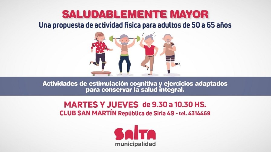 La Municipalidad de Salta pondrá en marcha esta semana el programa “Saludablemente mayor”, destinado a personas de entre 50 y 65 años.