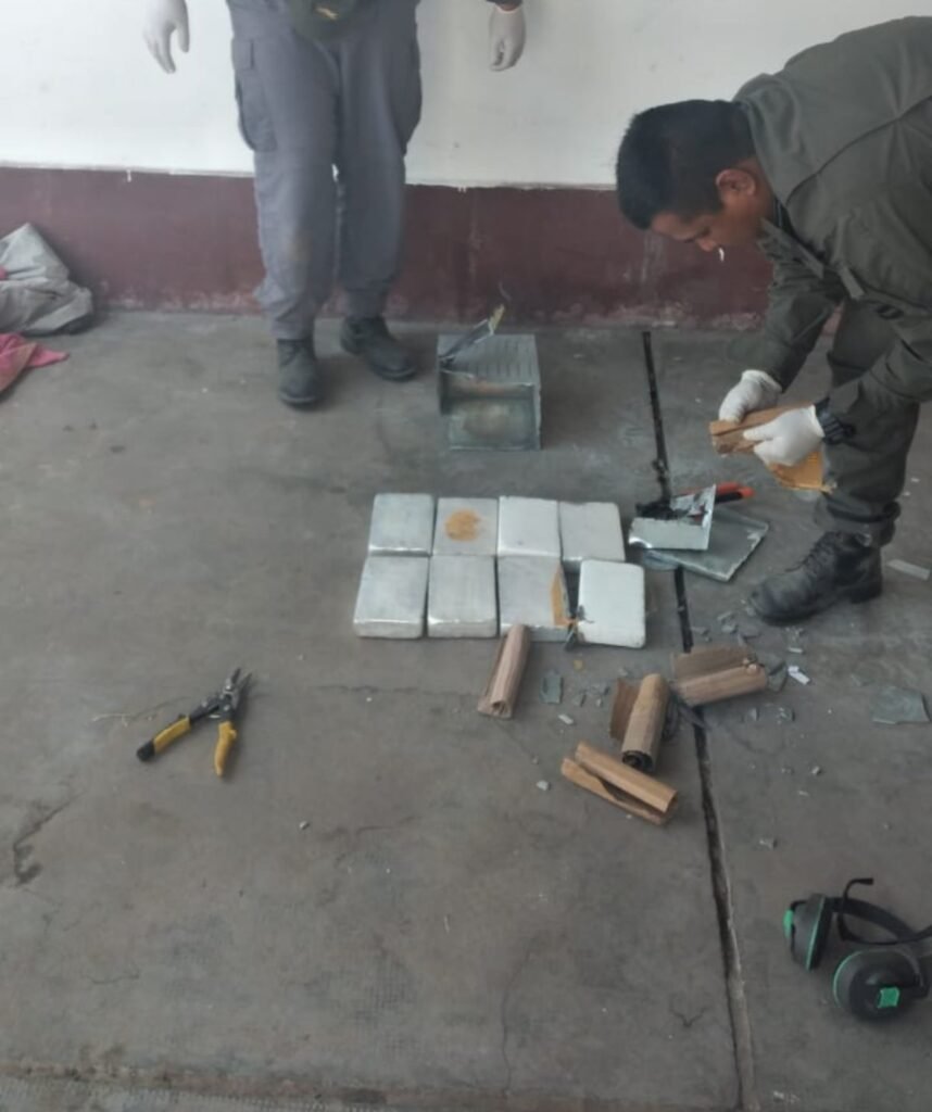 Allí, los efectivos profundizaron el registro, con apoyo del personal de DGA (Dirección General de Aduanas), mediante escáner detectaron anomalías en el interior de la estructura.