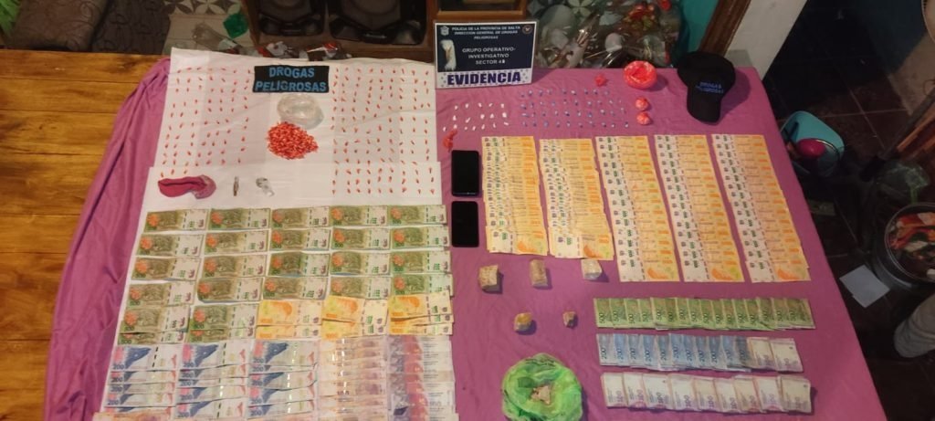 Los tres hombres de 50, 34 y 21 años y dos mujeres de 37 y 24 años fueron capturados en tres domicilios allanados en la ciudad de Salta y se les secuestraron 1192 dosis de paco listo para su comercialización, el equivalente a más de 4000 dosis de cocaína, marihuana, pastillas de clonazepam y 257.090 pesos.