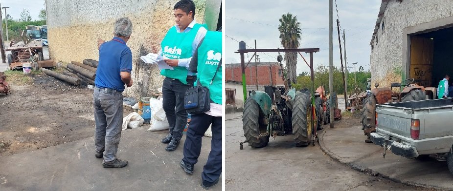 Los inspectores constataron la presencia de aceite de motores en desuso que había sido volcado hacia la vía pública, y la presencia de una gran cantidad de maquinaria agrícola (tractores) en estado de abandono.