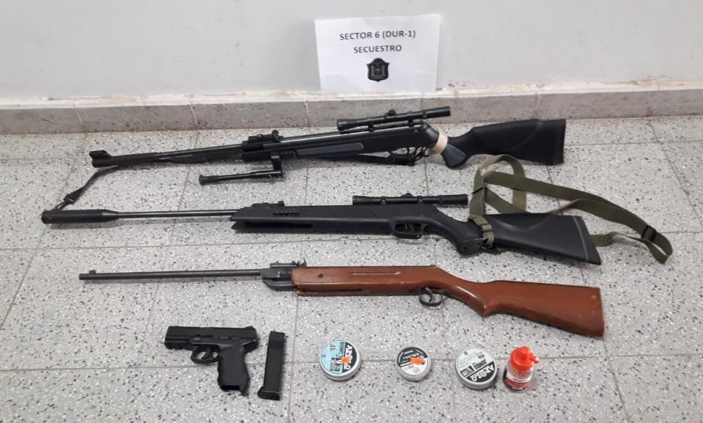 Les labraron infracción en razón que no poseían los permisos para la práctica como así carecían de documentación de las armas las que fueron secuestradas. Se tratan de tres rifles de aire comprimido y una pistola con balines.