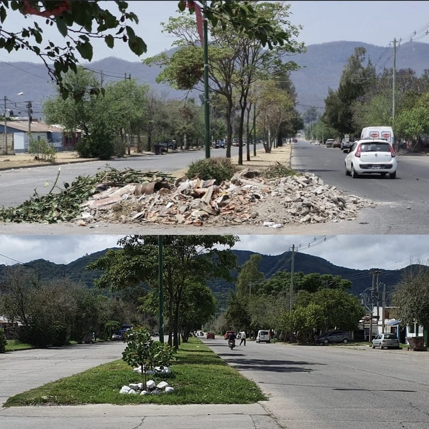 La platabanda de la avenida Houssay, frente a la escuela Monseñor Mariano Pérez de barrio Castañares, cambió su aspecto gracias al compromiso de vecinos que decidieron plantar árboles en dónde había un microbasural crónico.