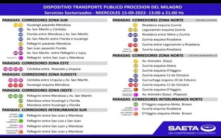 Como será el servicio y donde estarán las paradas de SAETA por la semana del Milagro