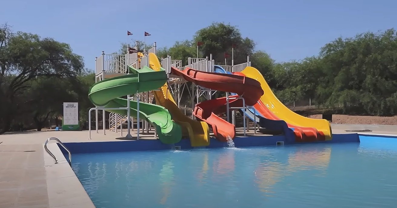 El parque acuático que tiene un aforo de 400 personas. Espacios especiales para niños y juegos para adultos en un extenso espacio ocupado por el parque con una pileta de más de 40 m de largo por 16 de ancho. Las piletas constan de 8 toboganes acuáticos para adultos; además también cuenta con una plaza de juego. Los juegos de agua para niños constan de 1 mangrullo, dos hongos y un chorro de agua.