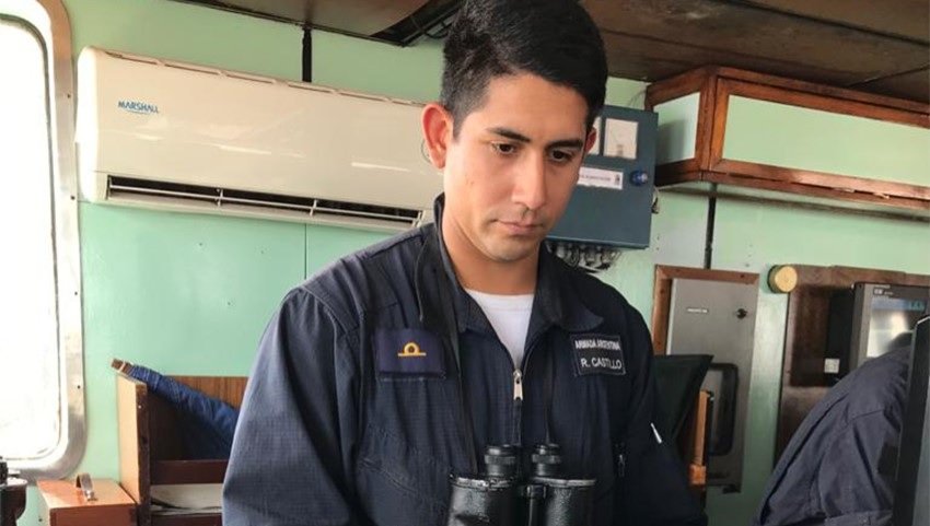 El Guardiamarina Rafael Osvaldo Castillo es oriundo de Embarcación, una ciudad ubicada a 350 kilómetros al norte de la Capital; allí nació y vivió hasta su ingreso a la Escuela Naval Militar en 2015. Recién egresado el año pasado, hoy se desempeña como Jefe de Navegación del transporte ARA “Canal Beagle”.