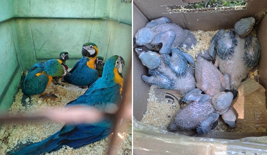 Las tareas de rastrillaje efectuadas en la zona por los gendarmes, resultaron en el rescate de 10 ejemplares de guacamayos (tres adultos y siete pichones), correspondientes a la especie Ara – Psittacidae.