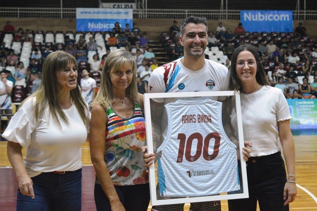 Antes de la acción la segunda división del básquet argentino, la dirigencia infernal a través de su presidente, Fernando Palópoli, y la secretaria de Juventud y Deportes de la Municipalidad de Salta, Josefina Chávez Díaz, entregaron una hermosa placa al jugador salteño Facundo Arias Binda, quien cumplió sus primeros 100 partidos con la camiseta infernal en La Liga Argentina.