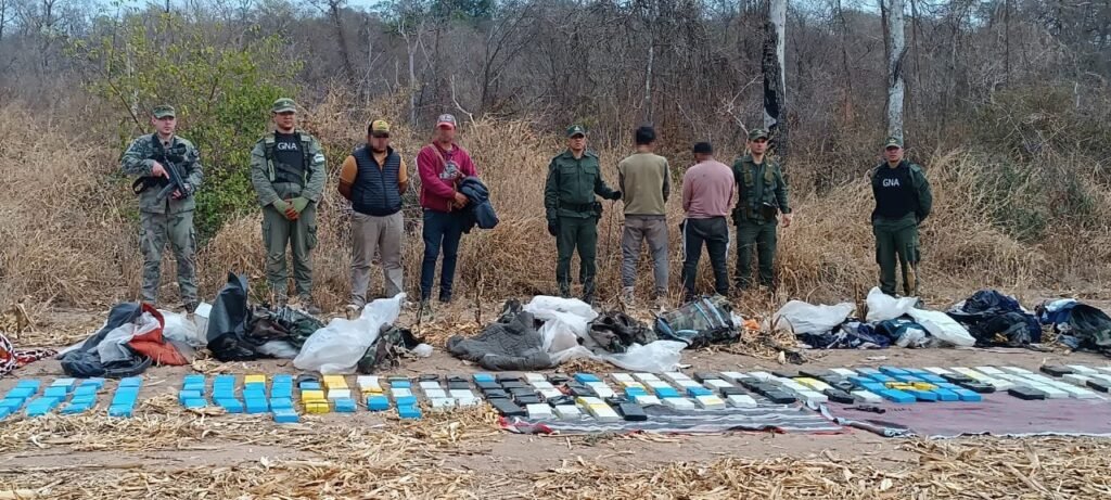 Ante esa situación, y debido a la baja visibilidad, se decidió emplear un intenso rastrillaje a la mañana siguiente, aprovechando la claridad del día. De esa manera, se logró hallar a otros dos hombres ocultos entre la vegetación, como así también 10 mochilas más cargadas con “ladrillos” de droga.
