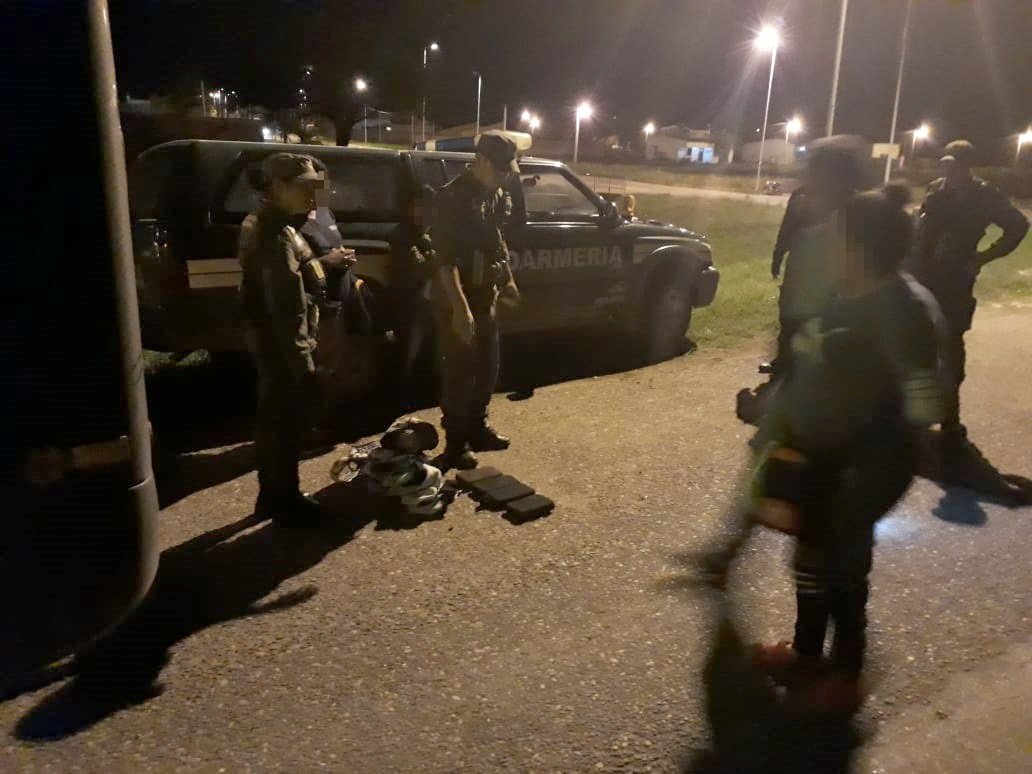 Los funcionarios, tras constatar los dichos de las personas, hallaron la mochila y detectaron en su interior cuatro paquetes rectangulares con 4 kilos 405 gramos de cocaína.