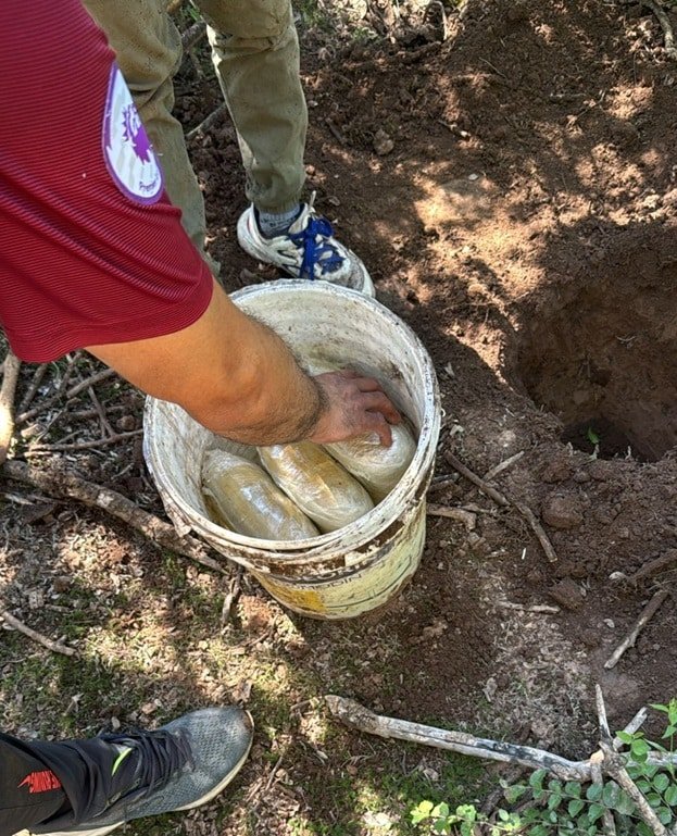 En la tarde del domingo pasado, los uniformados culminaron con los allanamientos y en uno de los domicilios encontraron 6 kilos 130 gramos de cannabis sativa que estaban enterrados bajo tierra dentro de dos tachos de pintura. Asimismo, al momento de la aprehensión, los sospechosos (uno de ellos el eslabón importante de la organización) intentaron escapar hacia una zona montuosa, pero fueron interceptados por el personal de la Fuerza.