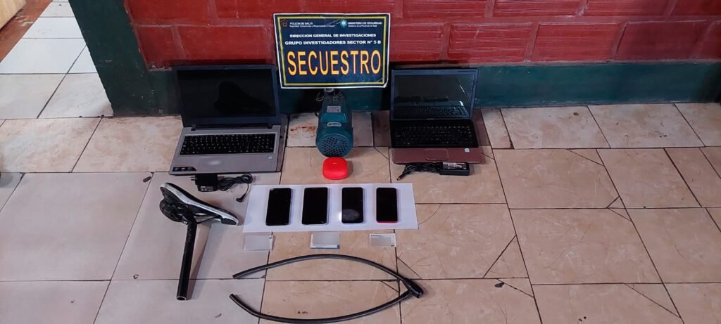 Tras la irrupción se procedió al secuestro de una placa policial falsa, prendas de vestir y otros elementos de dudosa procedencia como celulares, notebooks, entre otros.