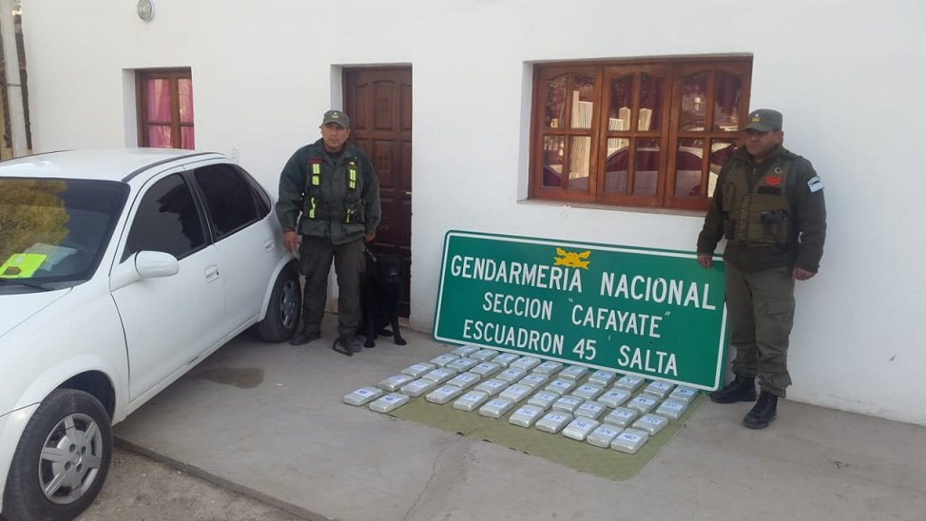 Efectivos de la Sección "Cafayate" dependiente del Escuadrón Núcleo "Salta" efectuaban controles sobre el kilómetro 4.318 de la Ruta Nacional N° 40 cuando interceptaron un automóvil Chevrolet Corsa ocupado por un hombre y una mujer de nacionalidad argentina. Circulaban desde nuestra provincia con destino final Buenos Aires.