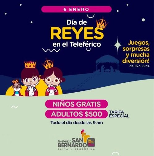 Desde las 16 hasta las 18 horas habrá actividades especiales para los más chicos, además de un espectáculo infantil. Podrán disfrutar del Día de Reyes con juegos, regalos y muchas sorpresas en la cima del cerro San Bernardo, en una experiencia mágica.