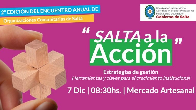 Con el propósito de generar un espacio de diálogo, vinculación e intercambio entre organizaciones y Estado, la Coordinación de Enlace y Relaciones Políticas de la Gobernación, a través de la Coordinación interministerial, realizará una nueva edición del encuentro federal de organizaciones comunitarias: “Salta a la Acción”.