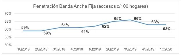 Con una variación interanual de apenas 1,9%, el total de accesos de banda ancha fija a nivel país pasó de 8.648.135 a 8.812.426 de marzo de 2019 a marzo de este año, resultando en una penetración de internet fijo por cada 100 hogares del 62,86%.