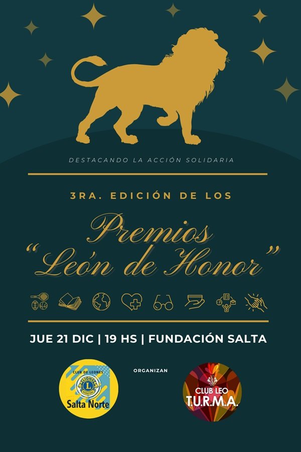 Los Clubes Leones Salta Norte y Leo Turma llevarán a cabo por tercer año consecutivo la premiación a la labor e impacto social este jueves 21, en el Teatro de la Fundación Salta - Gral. Martin Güemes 434 Salta Capital -, a las 19hs.