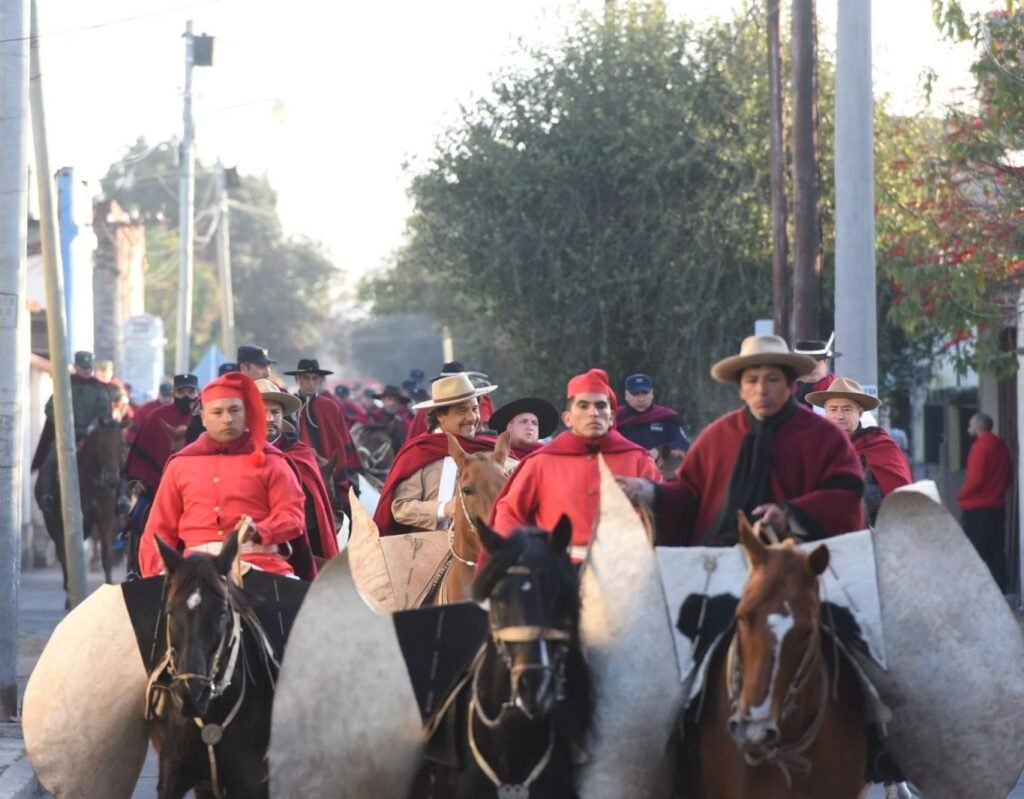 Cumplido el acto, el Gobernador se trasladó a la esquina de avenida Belgrano y Balcarce desde donde partió la cabalgata hasta la plaza Macacha Güemes, donde también se rindió un homenaje recordatorio en el 156° aniversario de su muerte.