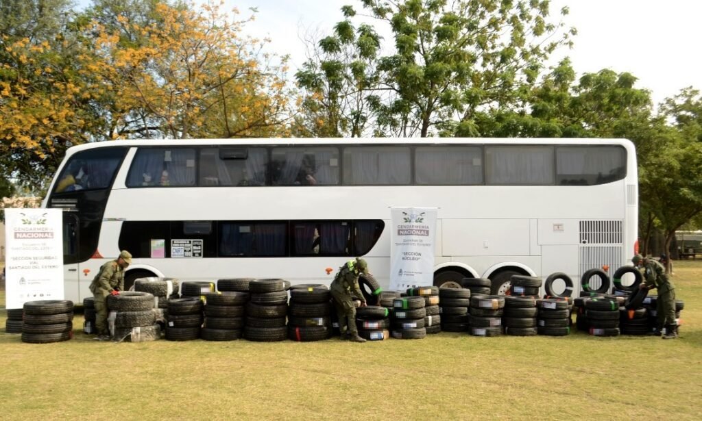 Minutos después, efectivos del mismo Escuadrón, controlaron un colectivo de larga distancia en inmediaciones del Departamento Pellegrini (Santiago del Estero) y secuestraron un total de 156 neumáticos de contrabando, cuya mercadería pertenecía a un ciudadano que no contaba con la justificación de su procedencia.