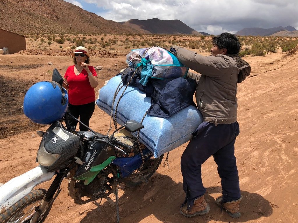 Continuamos el viaje hasta la casa de otra luchadora de la vida, Susana Guanuco quien nos recibió junto a su hijo Alan. Entregamos una manguera que nos donaron especialmente para que pueda llevar agua a su huerta, regalos para su hijo y ropa para ambos. Ella nos mostró su huerta y los trabajos que hizo para mejorarla. Al despedirnos nos convidó con unas deliciosas croquetas.
