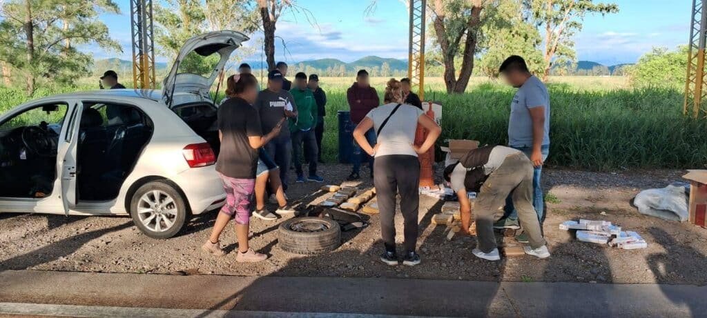 Durante el procedimiento, se secuestraron 33 paquetes de “cannabis sativa” con un peso total de 35 kilos 328 gramos, además de 250 paquetes de cigarrillos, dinero en efectivo por un monto de 165.800 pesos argentinos, dos teléfonos celulares, tres tarjetas SIM y los dos vehículos involucrados.