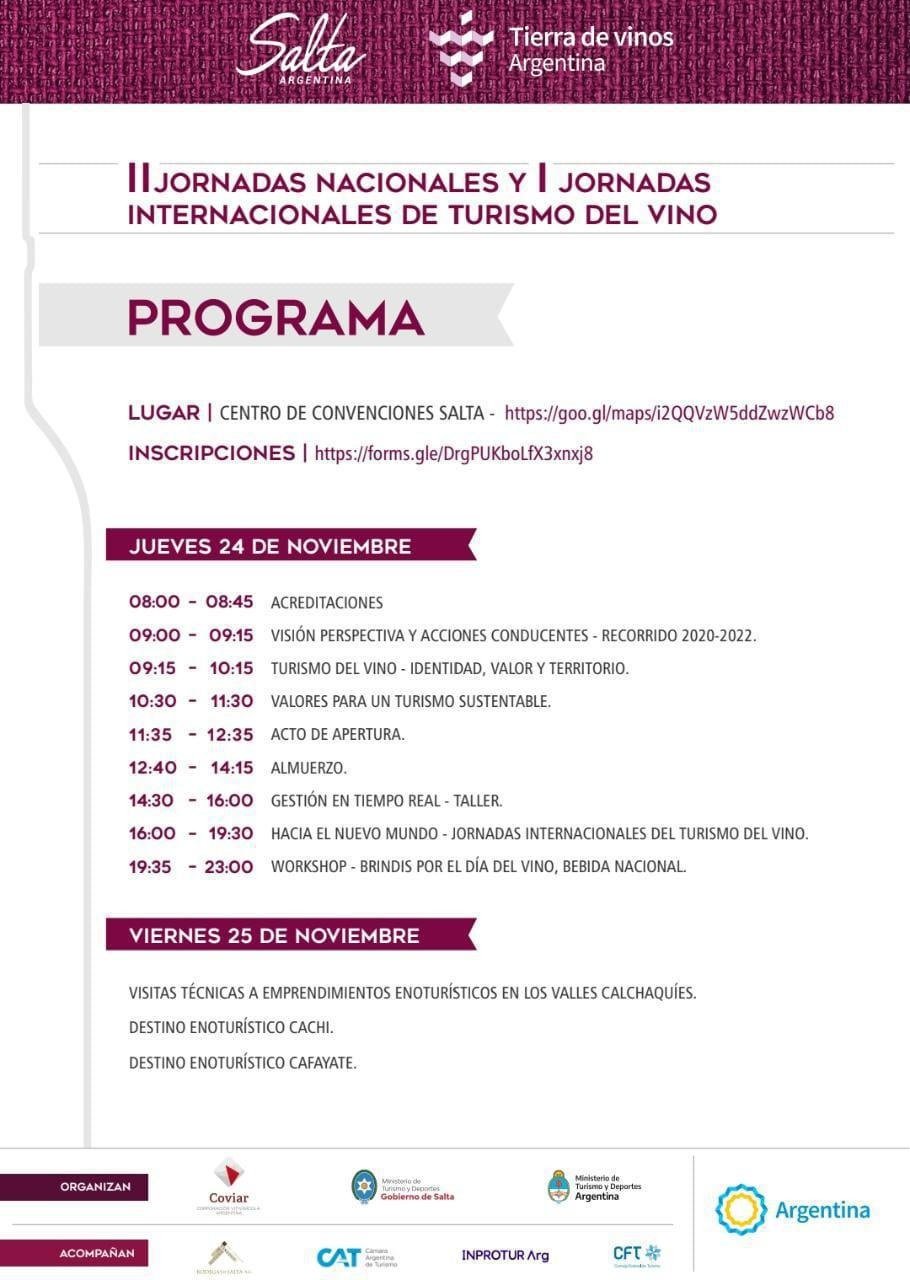 Nación, Provincia y la Corporación Vitivinícola Argentina, son los organizadores de estas jornadas que brindarán charlas de especialistas, talleres y visitas técnicas a emprendimientos que hacen enoturismo.