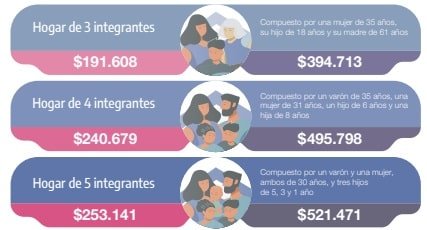 Una familia conformada por dos adultos y dos menores de edad necesita un ingreso de casi 500 mil pesos para no ser considerada en situación de pobreza, informó hoy el Instituto Nacional de Estadística y Censos (Indec).