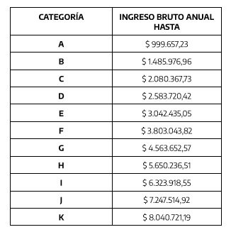 Los topes de facturación por categoría a tener en cuenta por los contribuyentes para cuando son los siguientes: