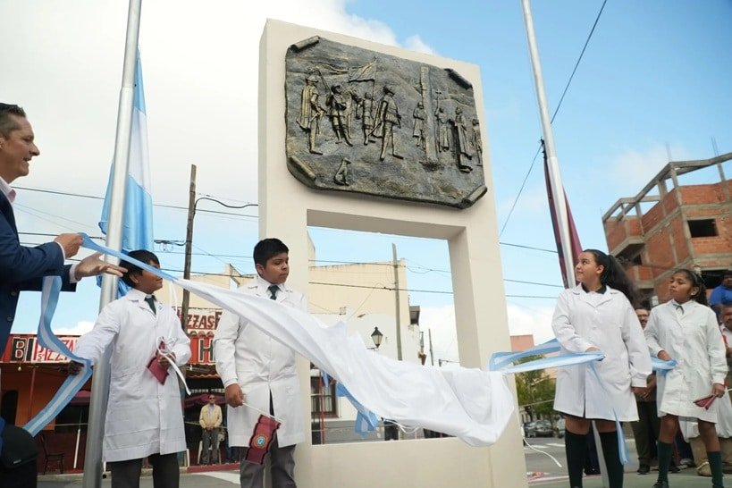 Durante la jornada también se vivió uno de los momentos destacados; el descubrimiento de un relieve escultórico en homenaje a la fundación de la ciudad, realizado por el escultor y profesor Ricardo Serrudo.