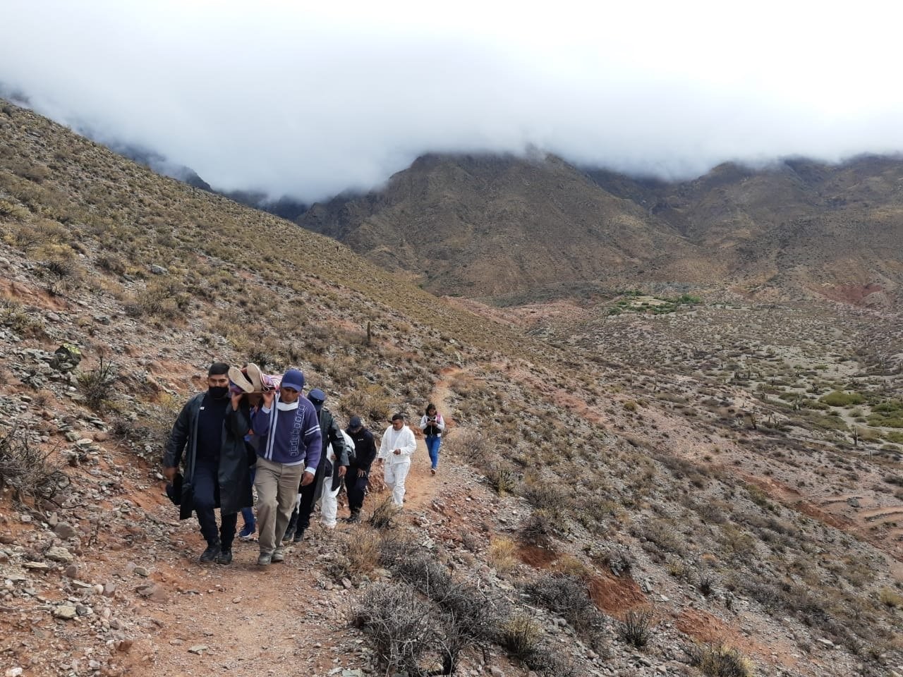 Para llegar hasta el lugar la comisión realizo un trayecto de más de una hora a pie debido a la dificultad e irregularidad del terreno, donde hallaron a la joven y emprendieron el regreso trasladando a la víctima en camilla.