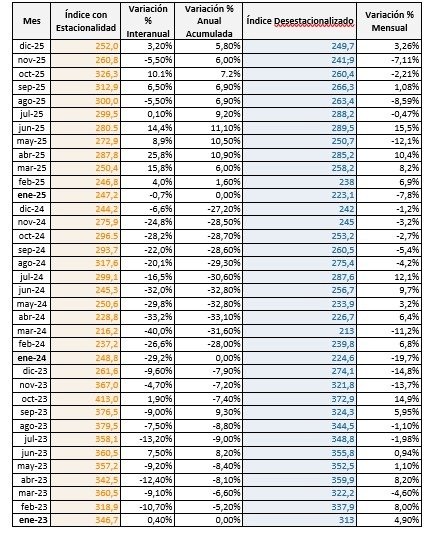 En diciembre el Índice Construya (IC), que mide la evolución de los volúmenes vendidos al sector privado de los productos para la construcción que fabrican las empresas que lo conforman, registró una recuperación de 3,26% mensual desestacionalizada, al tiempo que se ubicó 3,2% por encima de diciembre de 2024.