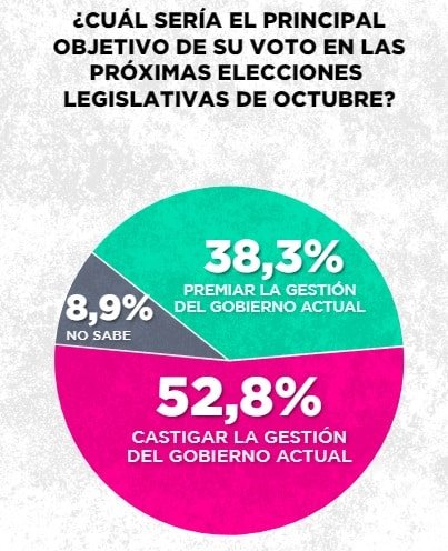 Con la mira puesta en los próximos comicios, tanto provinciales como nacionales, el sondeo también apuntó que la intención del 52,8% de los encuestados es "castigar la gestión del gobierno actual" con su voto, mientras que el 38,3% buscará "premiar al gobierno" de Milei.