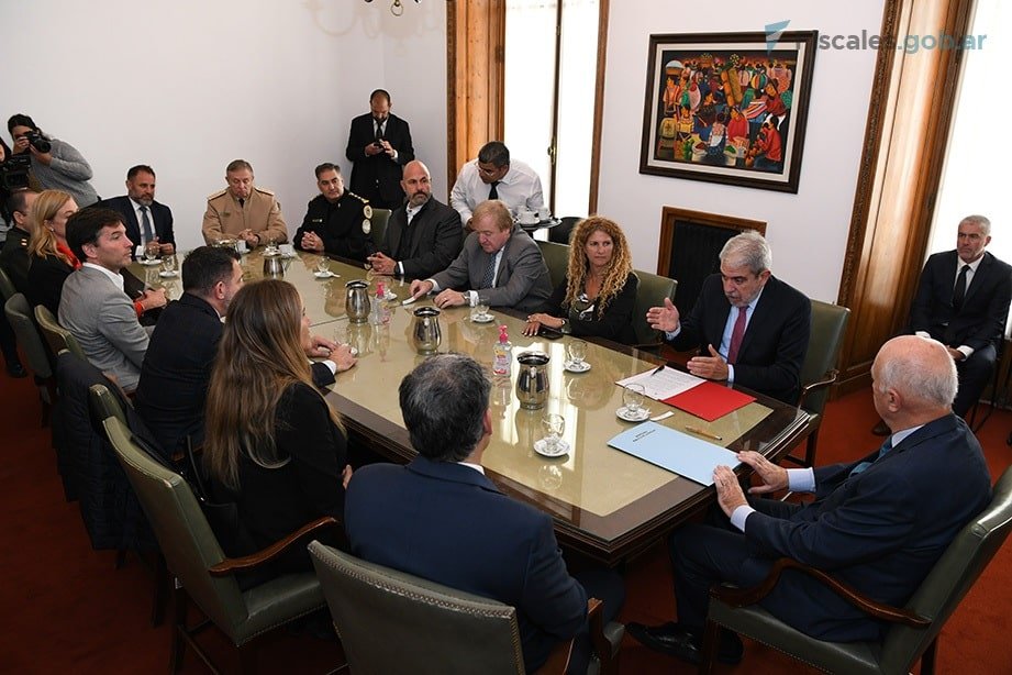 El ministro Fernández estuvo acompañado por el titular de la Unidad de Gabinete de Asesores, Lucas Gancerain; la secretaria de Seguridad y Política Criminal, Mercedes La Gioiosa; el director de Investigaciones del Ciberdelito, Pedro Janices; el director nacional de la Policía de Seguridad Aeroportuaria, José Alejandro Glinsky; el prefecto naval nacional Rubén Farinon; el jefe de la Policía Federal, Juan Carlos Hernández; y el director de Inteligencia Criminal e Investigaciones de la Gendarmería Nacional, Hugo Alejandro Miranda.