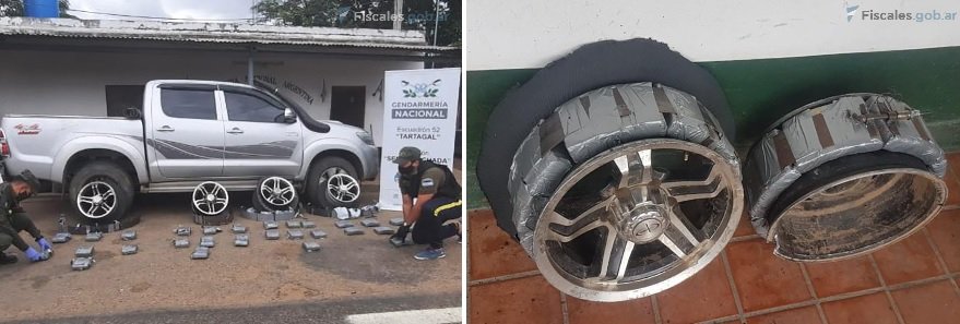 Como resultado de la misma, se descubrieron 7 paquetes de droga en cada neumático, lo que totalizó un peso de 30 kilos y 535 gramos de cocaína. Este procedimiento, según precisó el fiscal en su alegato, se produjo tras una investigación que la sede fiscal llevaba adelante desde el 11 de junio del 2020, a partir de una denuncia anónima.